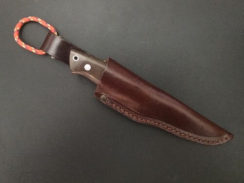 さて、 ”エンゾ・トラッパー” イタリアっぽい名前ですが、フィンランドのナイフです。 鋼材がN690co、刃渡り約10cm、刃厚約4mm。 ハンドルはグリーンキャンバスマイカルタ。これは、グリーンのキャンバス地を樹脂で固めたもの。 スカンジグライン…